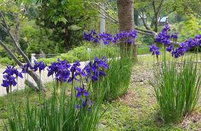 例年より遅れて雪が消え、田植えがやっとほぼ終わったという丈ヶ山(たけのやま)周辺では、農家の庭などにアヤメが色鮮やかです。