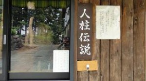 人柱供養堂のそばの、すべり止めのお札などを置いていた売店もリニューアルされて、地すべり伝説と謎に満ちたサルの伝説の展示場所になっていました。ご来館のときには、こちらも是非ご覧あれ。ボタンを押すとナレーションが流れます。